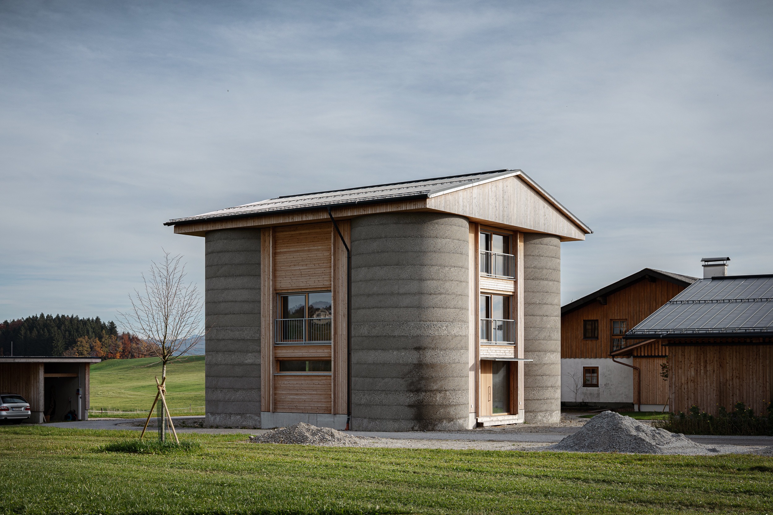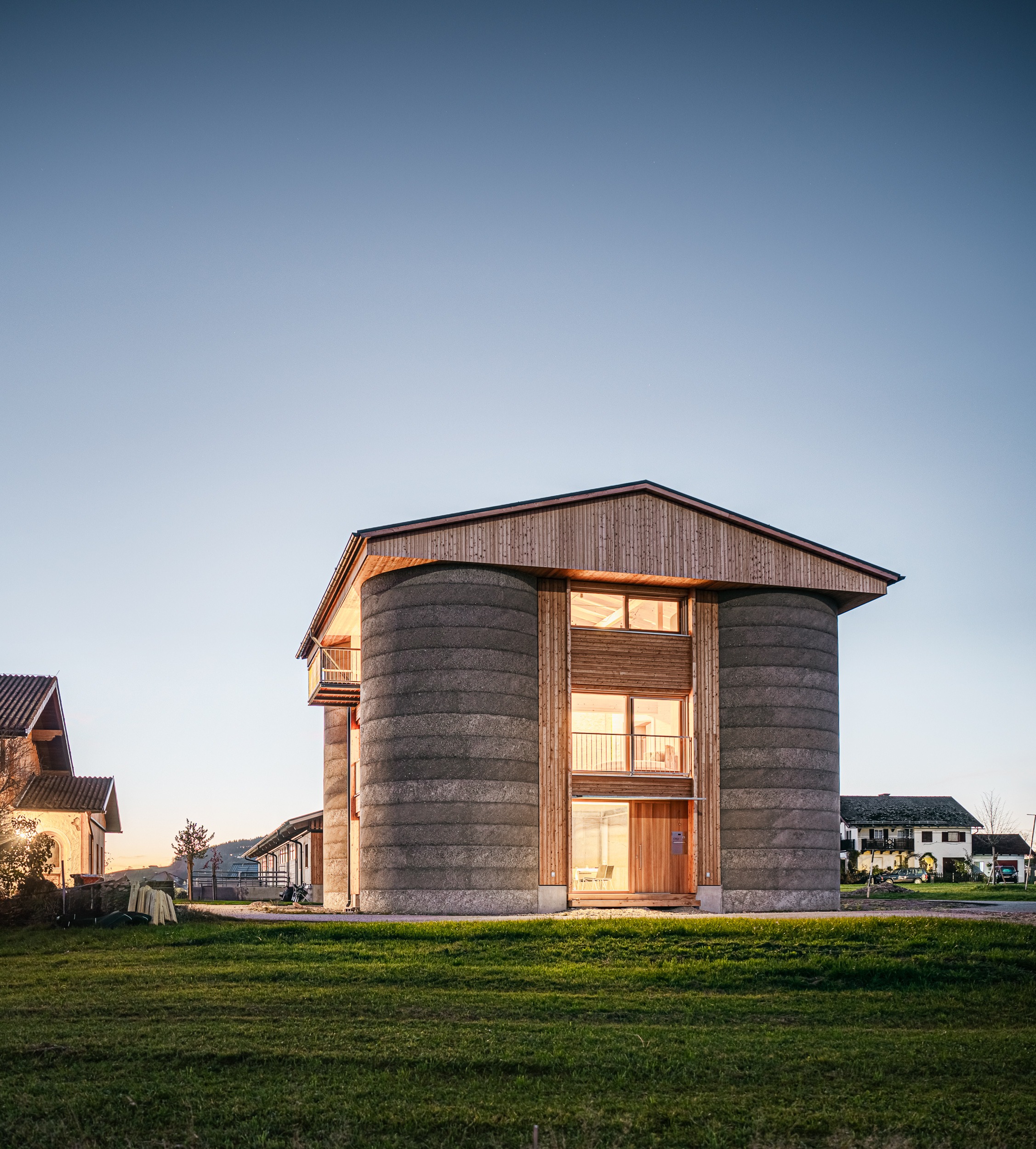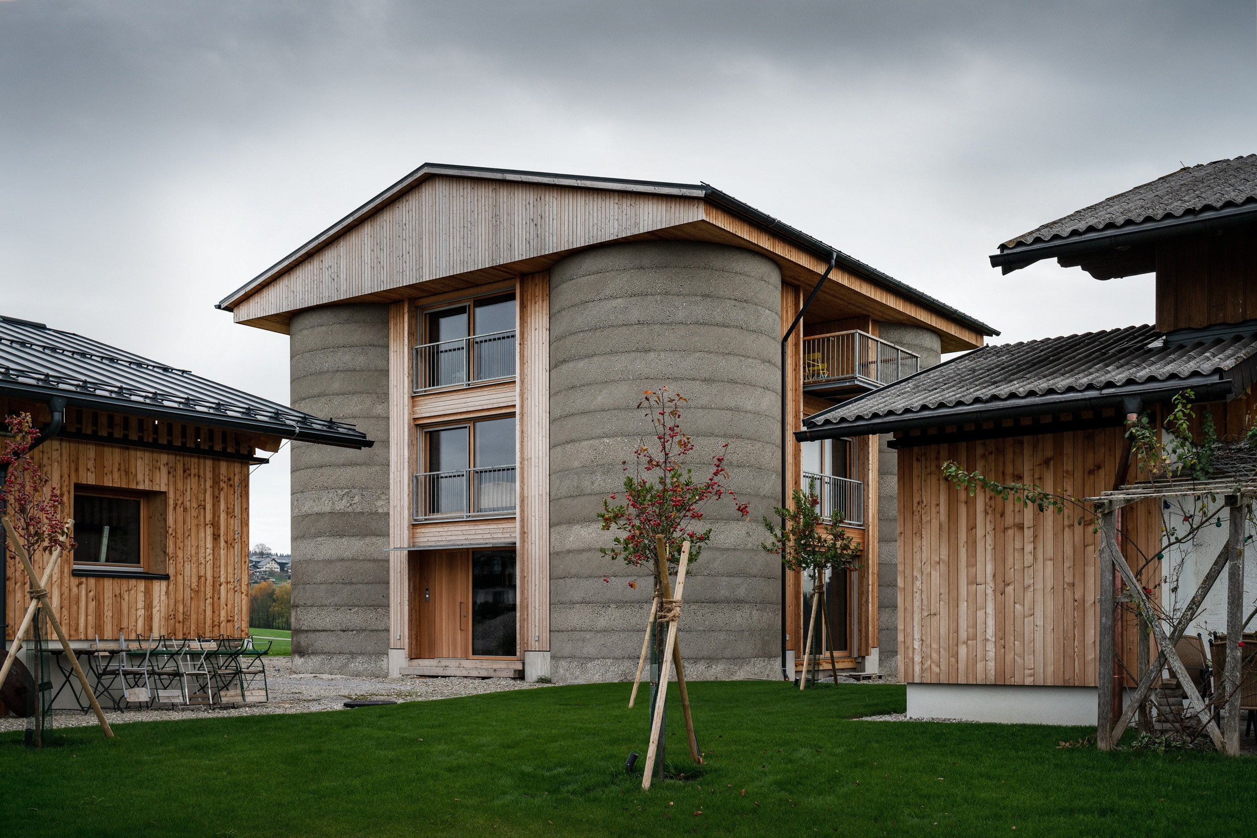 Der Neubau des Stallgebäudes und die Umnutzung der ehemaligen Silotürme in einen Wohn.- und Lebensraum für die Familienmitglieder, sichern den Erhalt und Betrieb des bestehenden Bauernhofs für die nächste Generation;