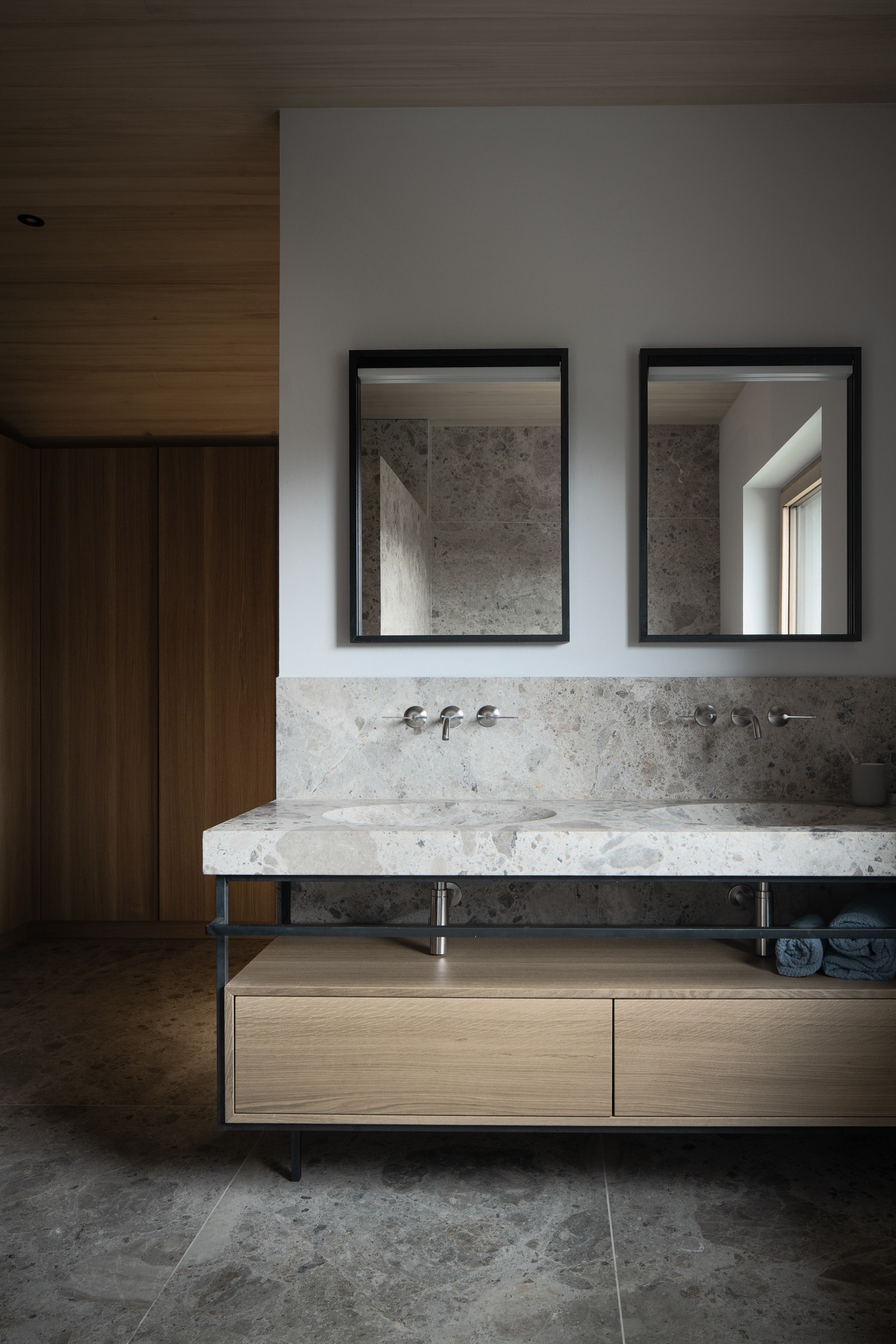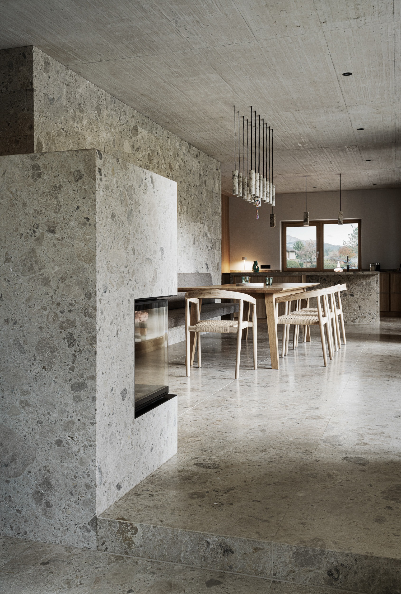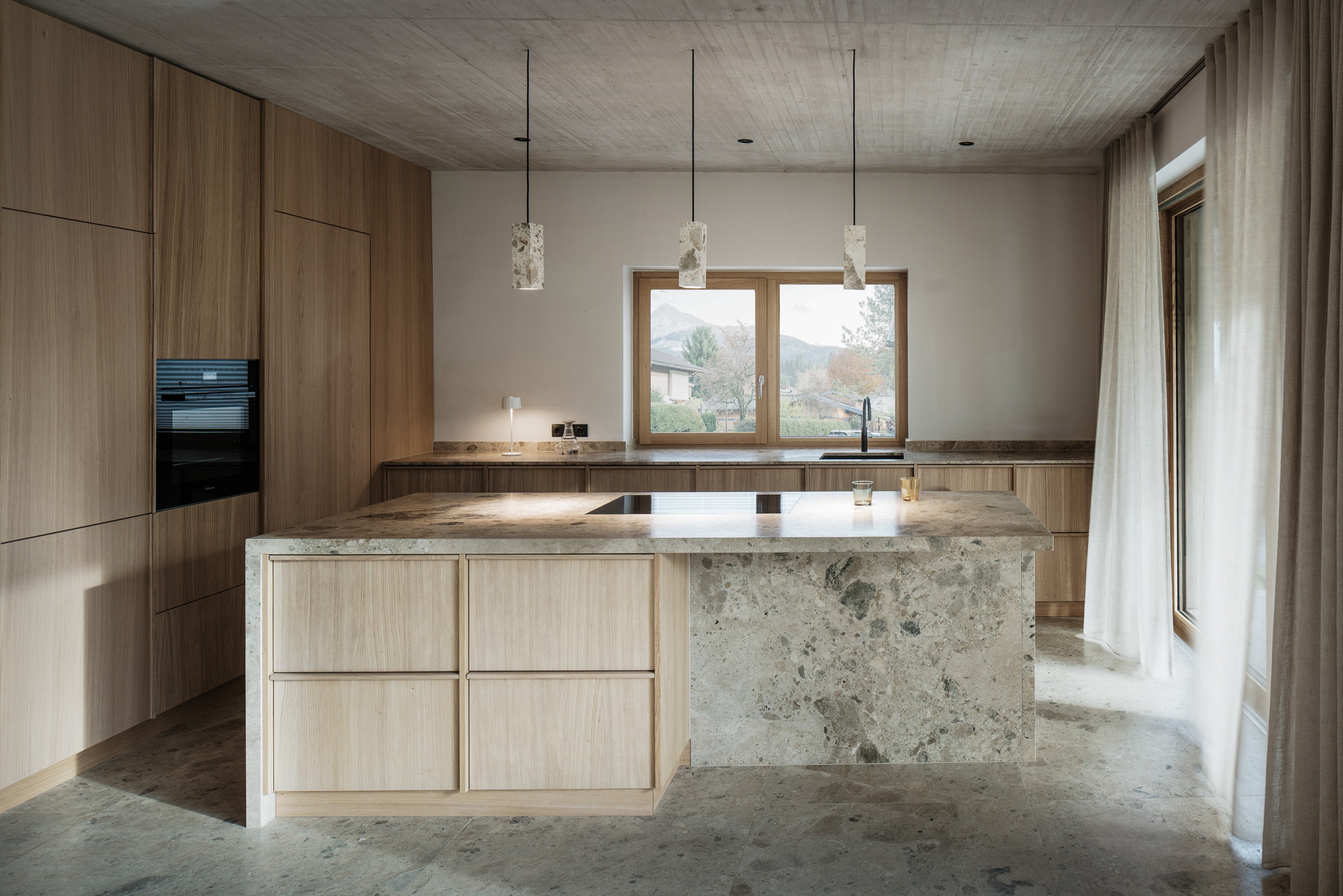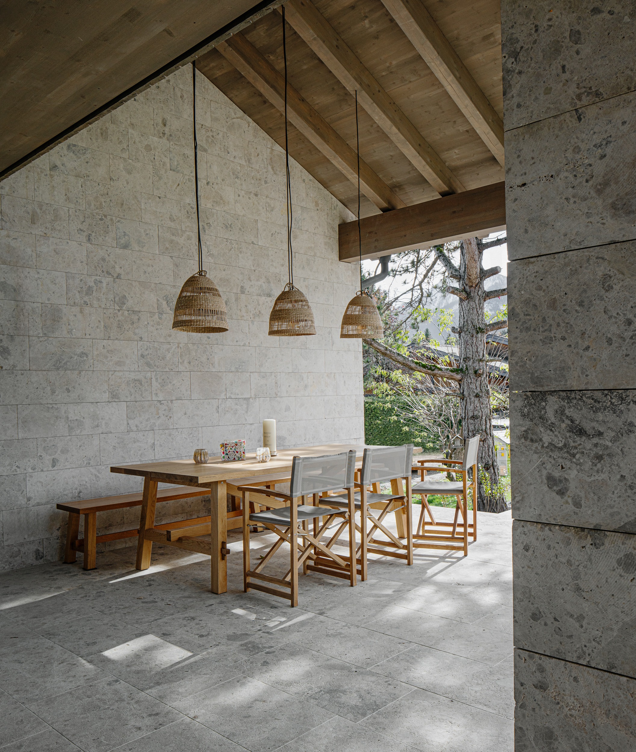 Der zweigeschossige Baukörper mit Satteldach orientiert sich an der ortsüblichen Haustypologie der angrenzenden Nachbarschaft. Die Schnittstelle in den Garten bildet eine überdachte Zone die sich zu einem Freisitz aufweitet und so den Lebensraum ins Freie erweitert;
