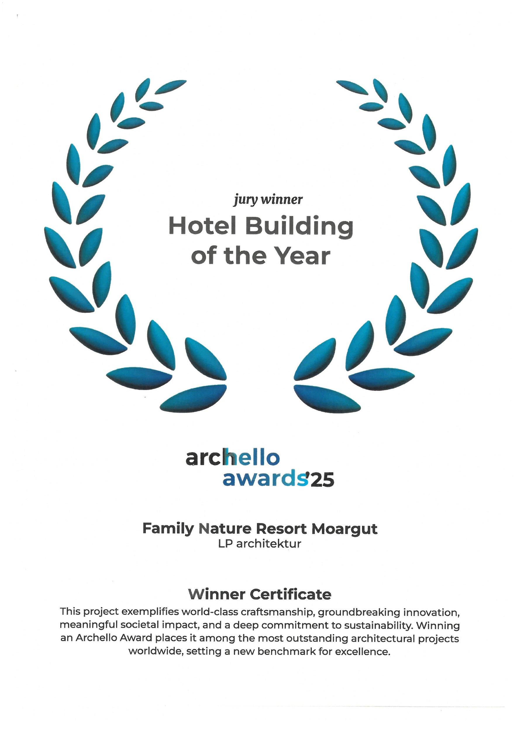 We are delighted that Family Nature Resort Moargut has been named the winner of the Archello Awards 2025 in the category Hotel Building of the Year.